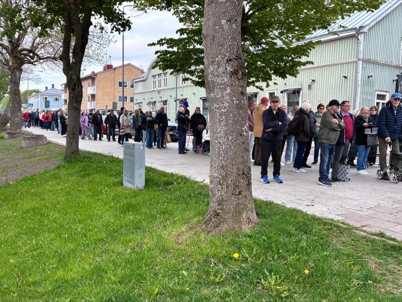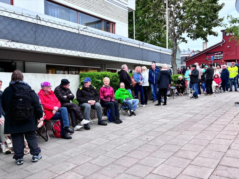 Flera personer hade köat ända från 05.30 och när biljettutdelningen började ringlade sig kön från Hotell Arkipelag till Självstyrelsegården. Ungefär 4000 biljetter delades ut.