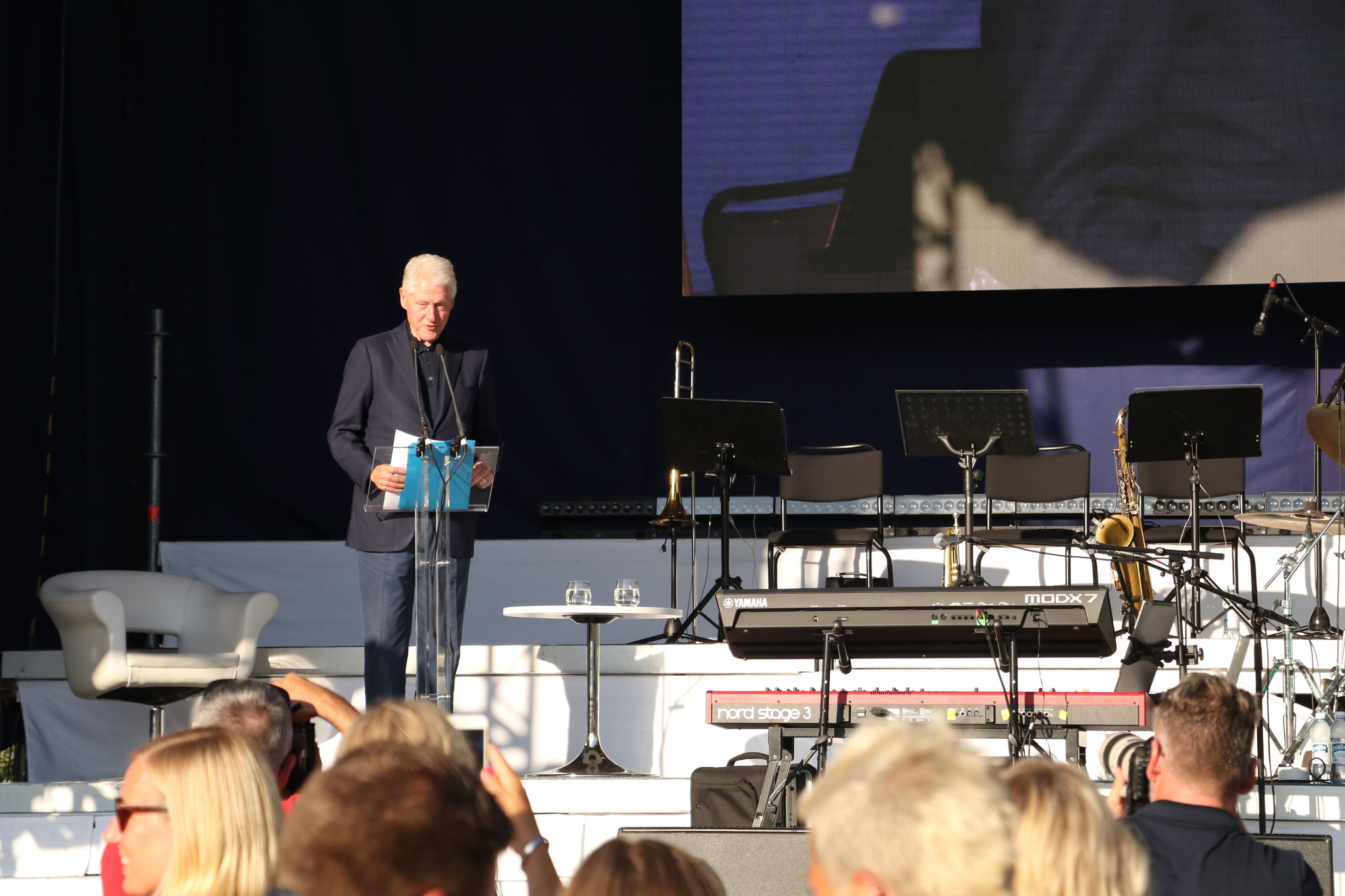 Den amerikanske före detta presidenten Bill Clinton talade om hur viktigt det är att rädda våra hav för den stora publiken som tagit sig till Anders Wiklöfs gratiskonsert i Miramarparken under torsdagskvällen.