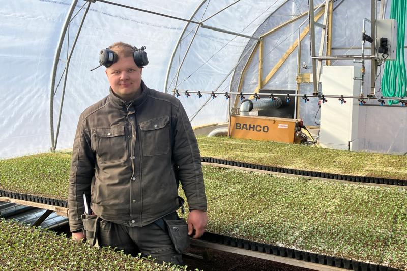 Bolstaholms gård i Geta färdigställde nyligen ett nytt växthus på drygt 400 kvadratmeter med avsikt att satsa på kålplantor.