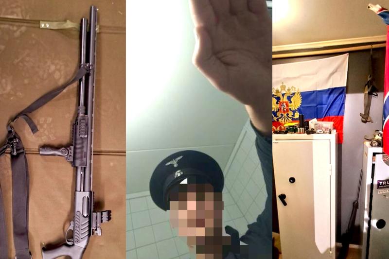 Vid husrannsakan hittade polisen, förutom olagliga vapen och en hemmagjord bomb, Adolf Hitlers bok Mein Kampf. I mannens vapenrum hängde sydstatsflaggan, ryska flaggan och Trump-klistermärken. När polisen fick åtkomst till hans telefon hittade de bilder där han gör hitlerhälsning iklädd nazisternas uniformsmössa.