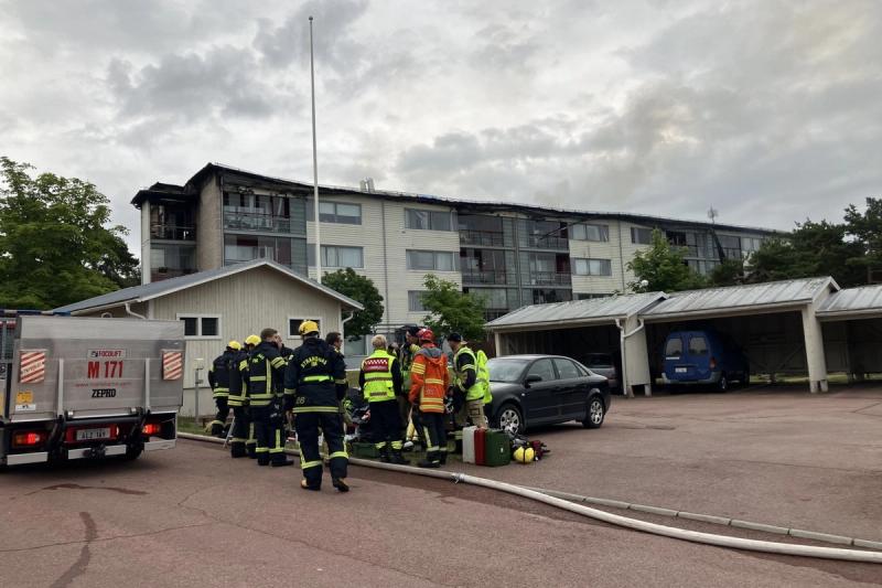 – Vinden håller fortfarande på att brinna ner under kontrollerade former och det är ett tidskrävande projekt. Vi bevakar det och kontrollerar så att det inte sprider sig till lägenheterna under vindsvåningen, säger Tomas Ahlqvist som leder arbetet på plats.