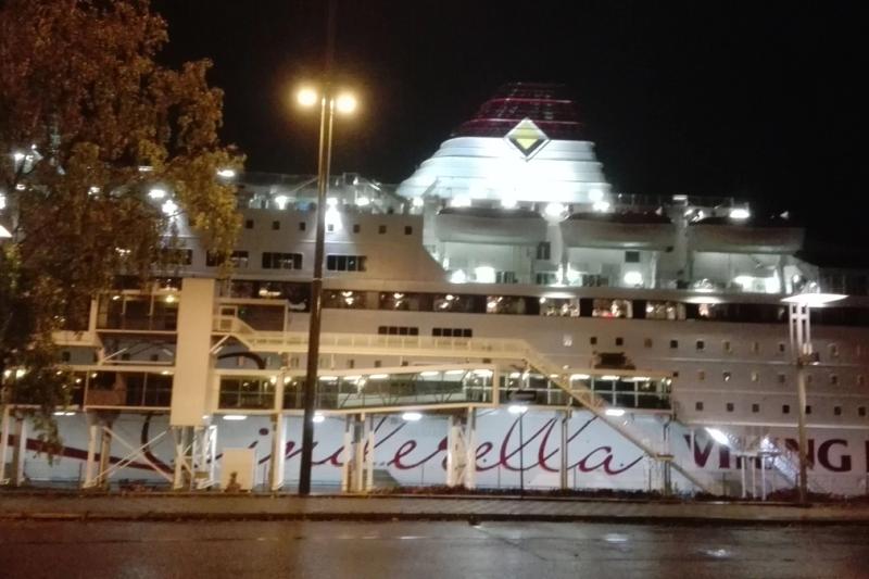 Viking Lines m/s Cinderella är ute på julkryssning och tanken var att hon skulle gå till Visby, men på grund av vädret kommer hon till Mariehamn i stället.