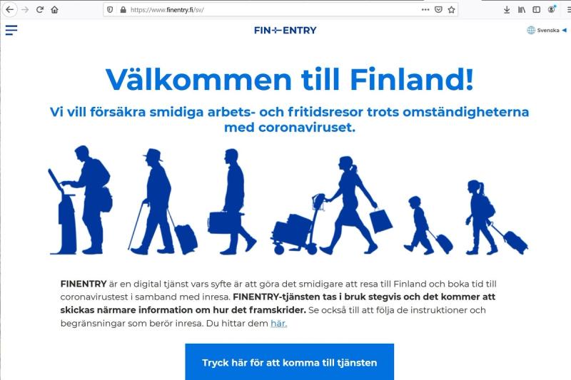- De som kommer in i landet får information om hur de ska bete sig och vilka regler som gäller. Och de kan beställa testtid via den, säger Asko Järvinen, infektionsöverläkare vid Helsingfors och Nylands sjukvårdsdistrikt HUS, som är en av aktörerna bakom webbsidan, till Svenska Yle.
