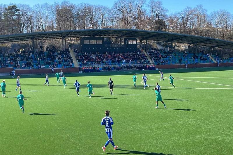 Det var det blåvita laget som vann när det var kamratmöte i fotboll i Göteborg, hemmalaget vann träningsmatchen med 2-0.