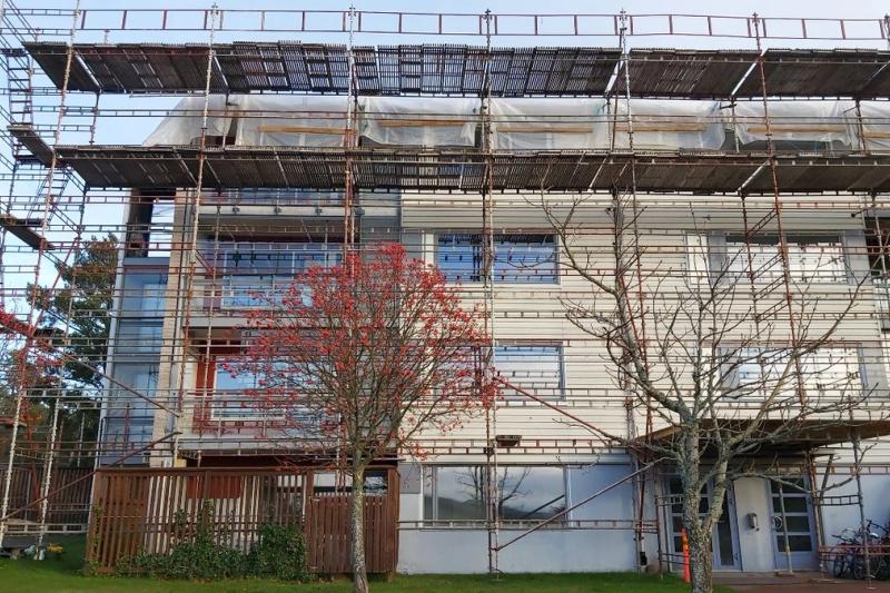 Anledningen till att fastighetsägaren, Sjömanspensionskassan, inte har påbörjat renoveringen är för att man förhandlar med försäkringsbolaget kring vem som ansvarar för att återställa lägenheterna.