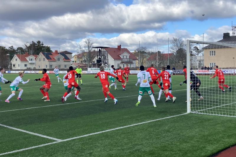 Gästerna från Jakobstad tog ledningen redan i den sjätte minuten. Albin Björkskog slog ett högerinlägg som Kerfala Cissoko i lugn och ro kunde ta ner och rulla in Jaros första ligamål på tio år.