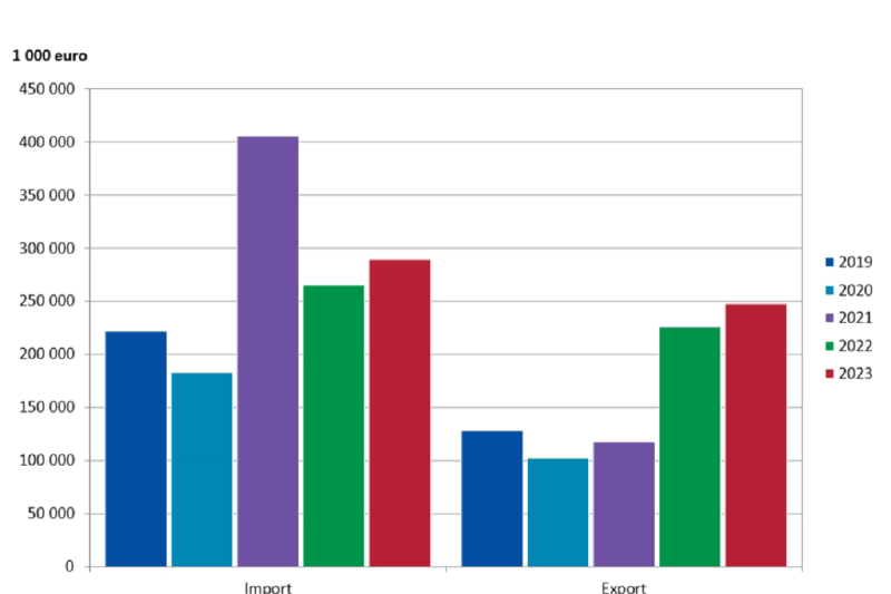 Den direkta varuhandeln med utlandet gav således år 2023 ett handelsnetto på nästan minus 42 miljoner euro, vilket är två miljoner mer än 2022.