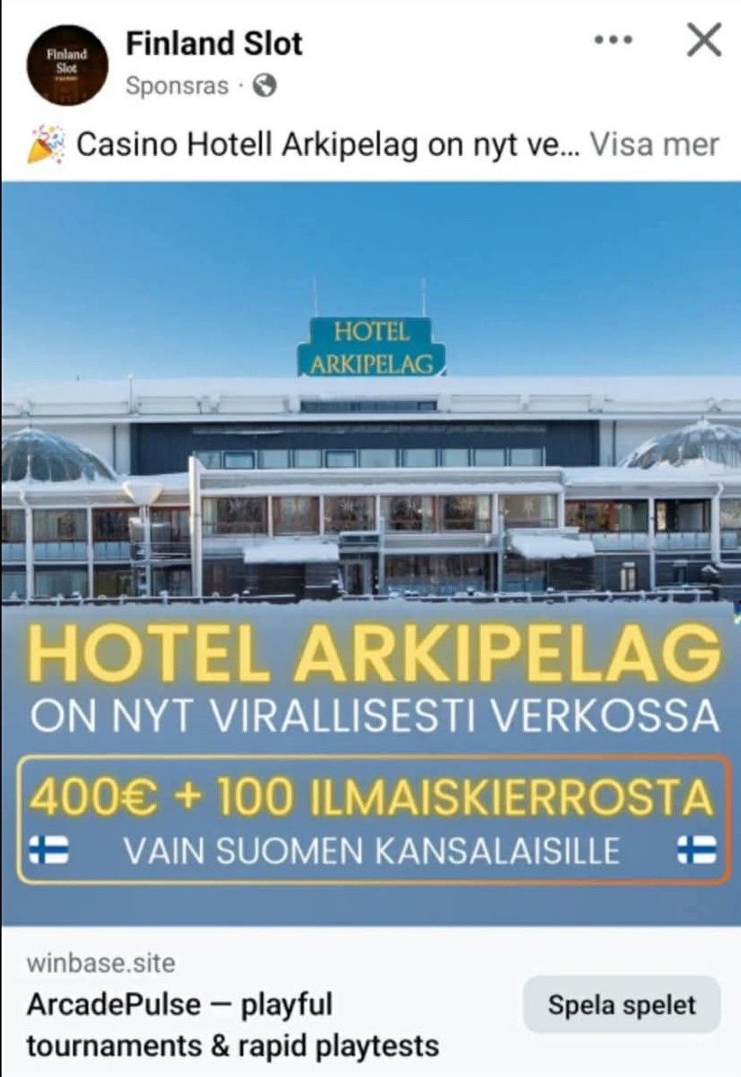 Under helgen dök det upp en annons om ett Casino Hotell Arkipelag på Facebook, en annons som var ett falskt konto.