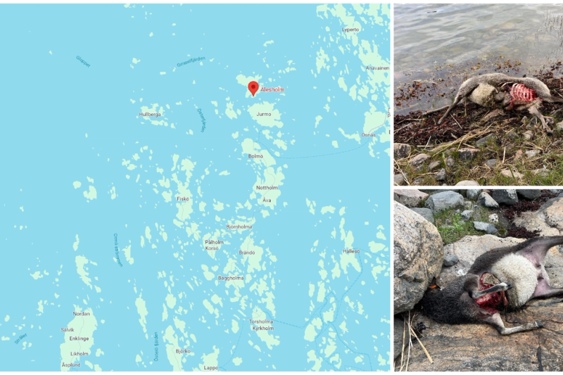 Två får har hittats döda på en holme nära Jurmo i Brändö. Fåren kan ha rivits av en varg.