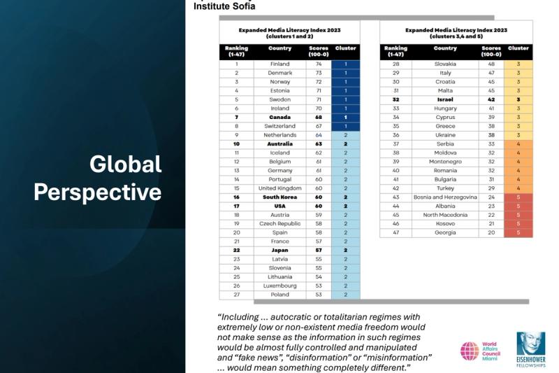 Finland har legat etta på det så kallade Media Literacy Index i flera år nu och det är därför som Aaron Rosen valt att komma hit och studera faktorerna som är avgörande så att han ska kunna ta med sig de kunskaperna hem och hjälpa befolkningen hemma i USA att bli bättre. Det är specifikt några saker som Aaron Rosen lyfter fram som främsta orsaker till Finlands framgångar. Nämligen det att utbildningsväsendet lär ut kritiskt tänkande till elever. Dessutom utbildas eleverna på att kunna ta till sig och tyda information på olika sätt.