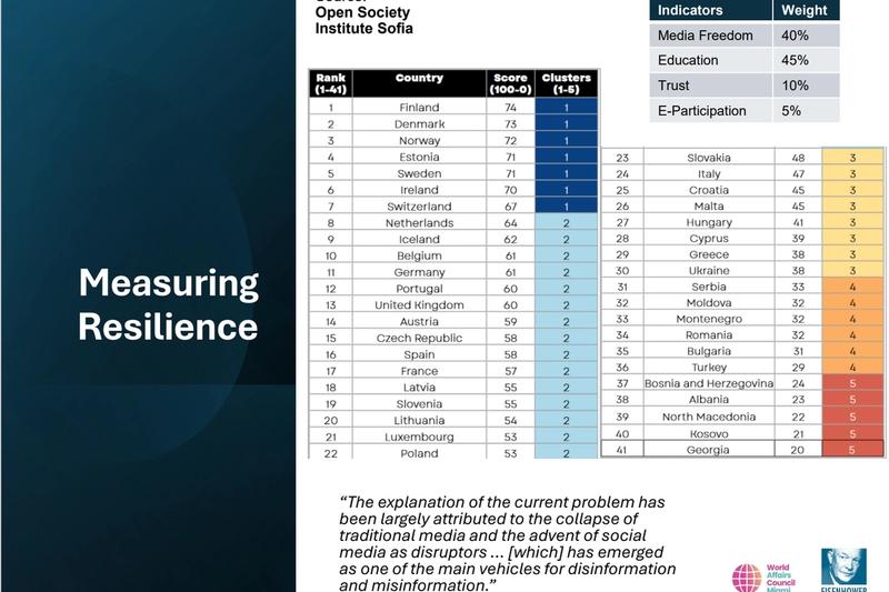 Aaron Rosen berättar att det som gör att Finland ligger högst upp på listan över demokratier i världen som har bäst motståndskraft mot desinformation och falska nyheter är att vi har mediefrihet, att befolkningen har högt förtroende för flera viktiga instanser i samhället och att Finland är bra på att inkludera medborgare på olika sätt, bland annat genom att se till att alla ska ha möjlighet att lära sig nya digitala verktyg.