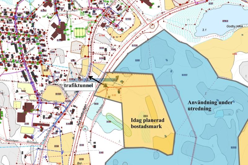 Kommunstyrelsen menar att behovet av att knyta ihop Godbys östra och västra del har ökat i och med att området Bergshägnan på östra sidan har detaljplanerats. När det är fullt utbyggt kan det omfatta bostäder för över 100 personer.