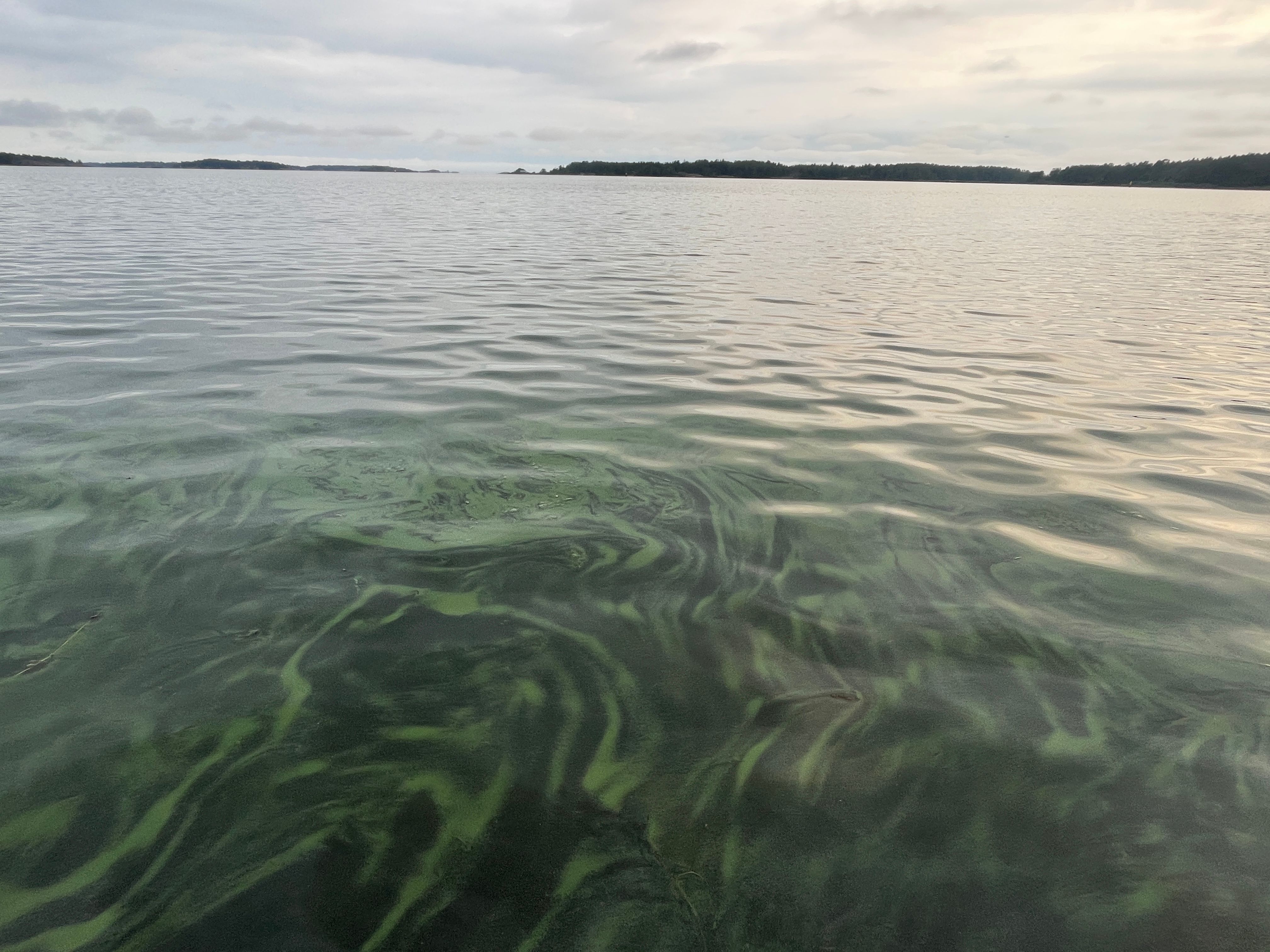 I Husöviken i den åländska innerskärgården noterades mycket rikliga algblomningar ännu i början av oktober. De numera regelbundna höstblomningarna i Husöviken började i år redan i början av september.