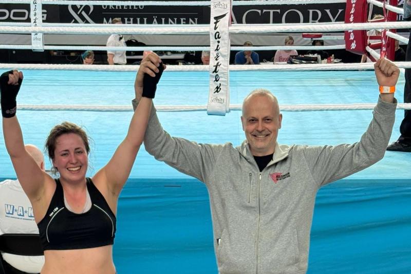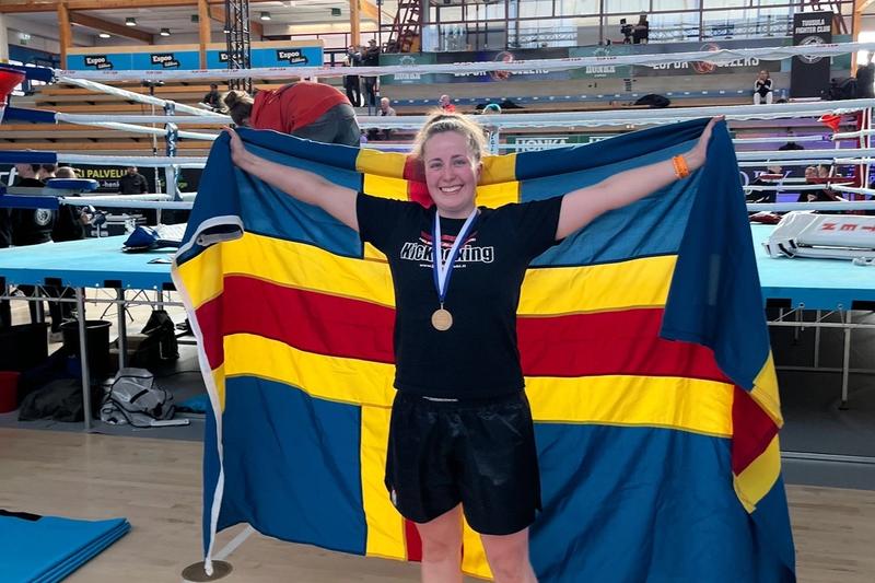 FM-debutanten Julia Johnsson tog hem ett guld i kickboxning i klassen K1 +70 kilo.
