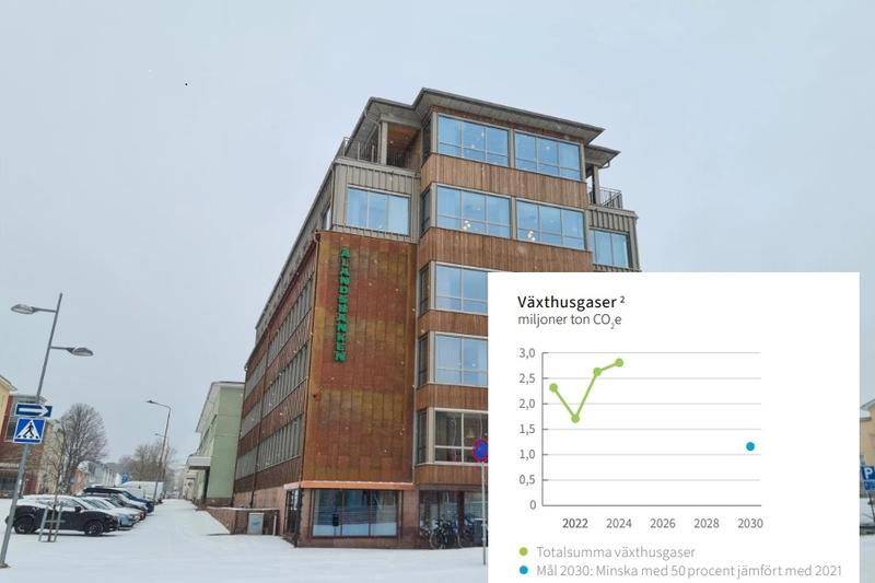 Ett av Ålandsbankens långsiktiga klimatmål avseende utsläpp av växthusgaser är att minska utsläpp med 50 procent senast 2030, jämfört med nivån 2021. Men Ålandsbankens totala utsläpp för 2024 motsvarar en ökning med 21 procent jämfört med basåret.