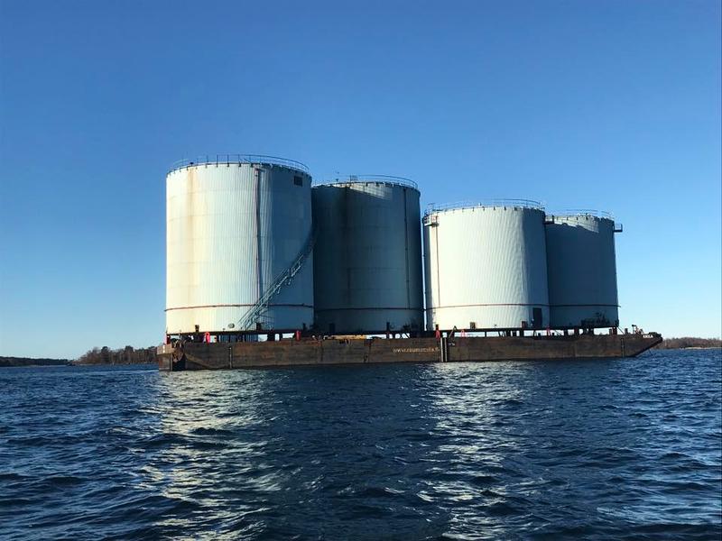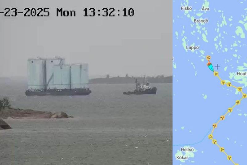 Den spektakulära frakten är tomma förvaringstankar som ska användas i hamnar längs den finska kusten. Koskinen uppskattar spaningar från vaksamma medborgare som i vissa kan förhindra olyckor, men försäkrar att allt är i sin ordning denna gång.