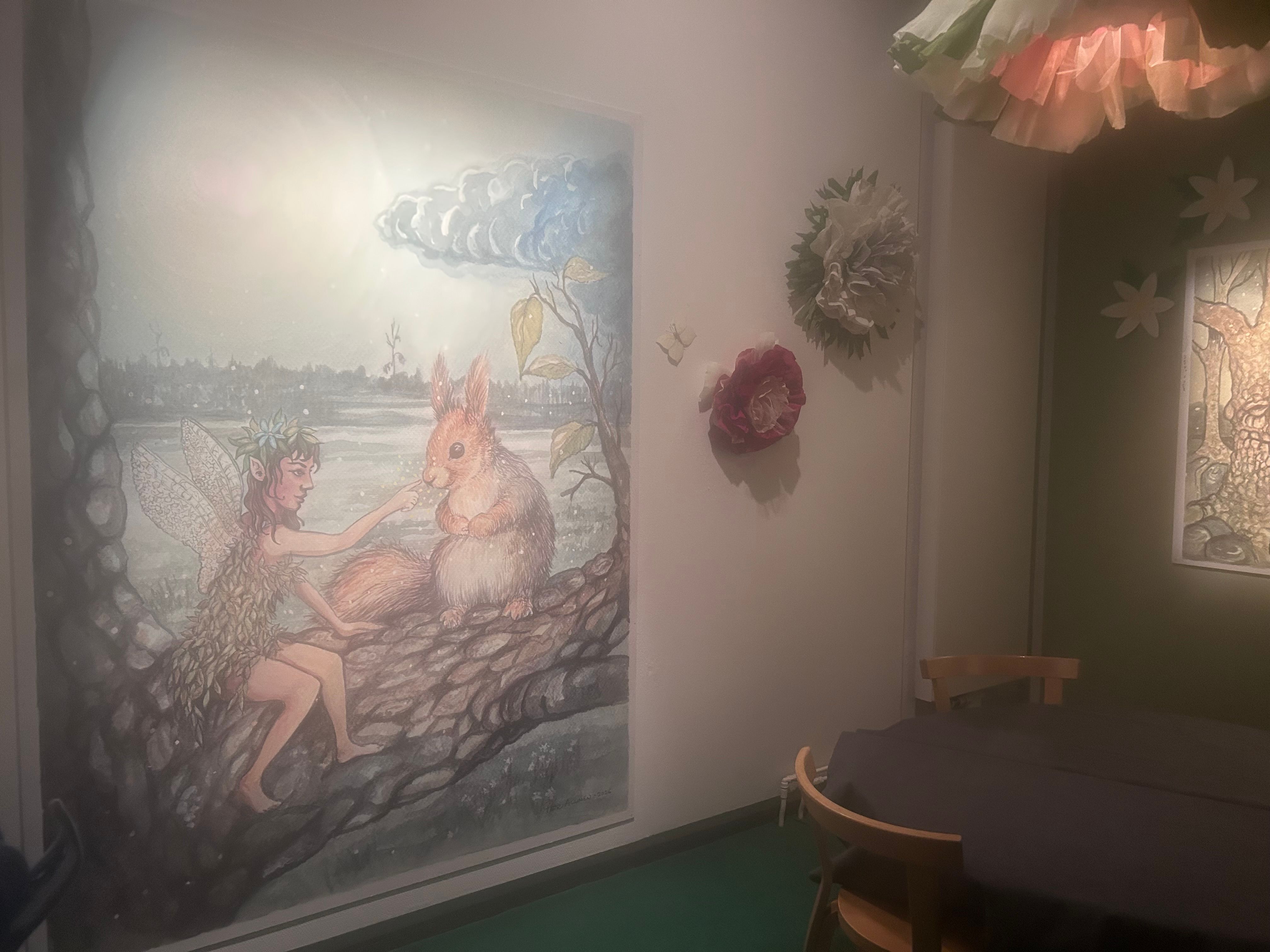 Att besöka utställningen är lite som att kliva rakt in i en sagobok. Det ligger ett trollskt ljus över rummen där man till exempel kan pröva en älvhatt, hjälpa en tomte hem, tipsa var det finns spöken och klä ut sig till ett troll i dräkter gjorda av utställningsplanerare Maggan Husell. Väggarna pryds av Petri Allinens målningar