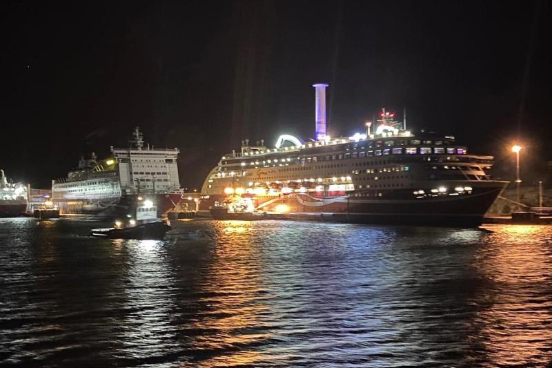 Operationen ägde rum på natten och hon låg vid kaj klockan 03.40. Passagerarna evakueras nu på morgonen, meddelar sjöbevakningen.
