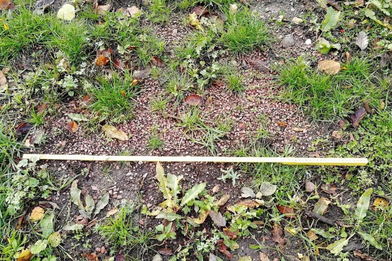 Det har varit svårt för gräset att gro i gruset, då ogräs trivs bättre i grus och växer snabbare än gräs.