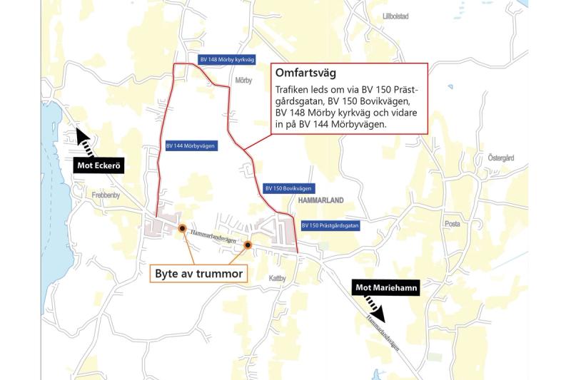 Hammarlandsvägen stängs av för trumbyten