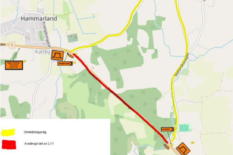 De avstängda sträckorna är mellan korsningarna Hammarlandsvägen och Skarpnåtövägen samt Hammarlandsvägen och Mejerigatan. Trafikanterna kommer att ledas om på Skarpnåtövägen och Mejerigatan. Det är endast trafik till tomt som är tillåten på den avstängda delen av Hammarlandsvägen från korsningen Hammarlandsvägen-Mejerigatan.