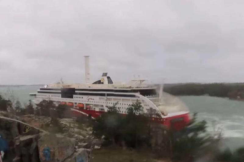 Kim Jansson stod uppe på Lotsberget och filmade när Grace skulle angöra Mariehamn, för sin Youtubekanal.