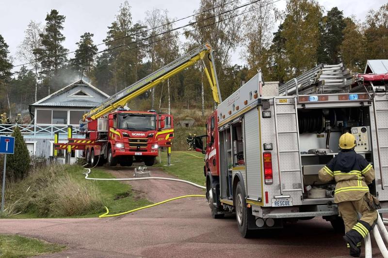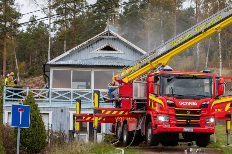 – Det kommer vara någon här och bevaka branden under kvällen åtminstone. Det blev stora vattenskador på huset då det var flera ställen där det var svårt att komma åt, säger Thomas Mattsson.