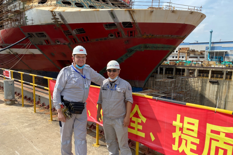 Orsaken till underbemanningen är att coronapandemin gjort det svårt för personal att ta sig till varvet i Xiamen med anledning av stängda gränser och liten tillgång på flyg.