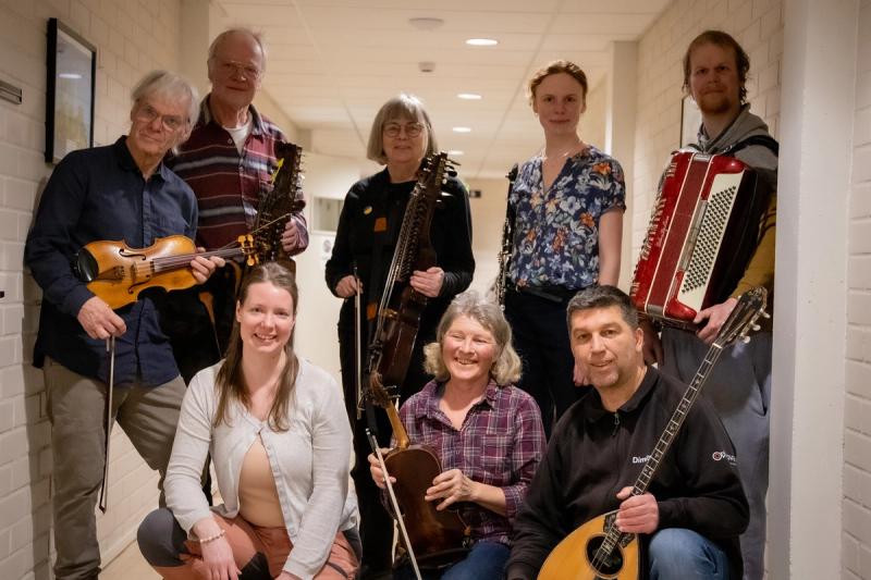 Mikael Nykäsenoja heter eldsjälen bakom orkestern NorDans som består av både folkmusiker och andra instrumentalister. I det gäng som kom till Eftermiddagsprogrammet fanns både nyckelharpor, fioler och dragspel, men också en klarinett och en bozouki, fast orkestern är större än så . Det här var bara dom som kunde komma, säger Mikael.