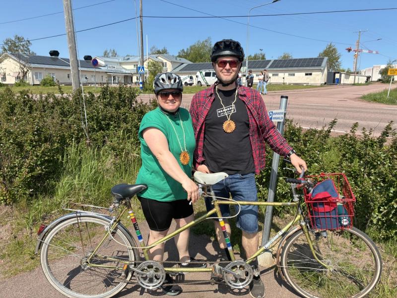 I 40-kilometersloppet deltog även en tandemcykel med Ulrika och Gabriel Karlsson på varsin sadel.