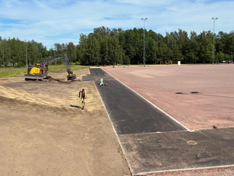 Även en del markarbeten runt planen har gjorts och det innebär att det blir lättare med plogning av snö på vintern och det finns plats att ställa fotbollsmål som inte är i användning för tillfället.