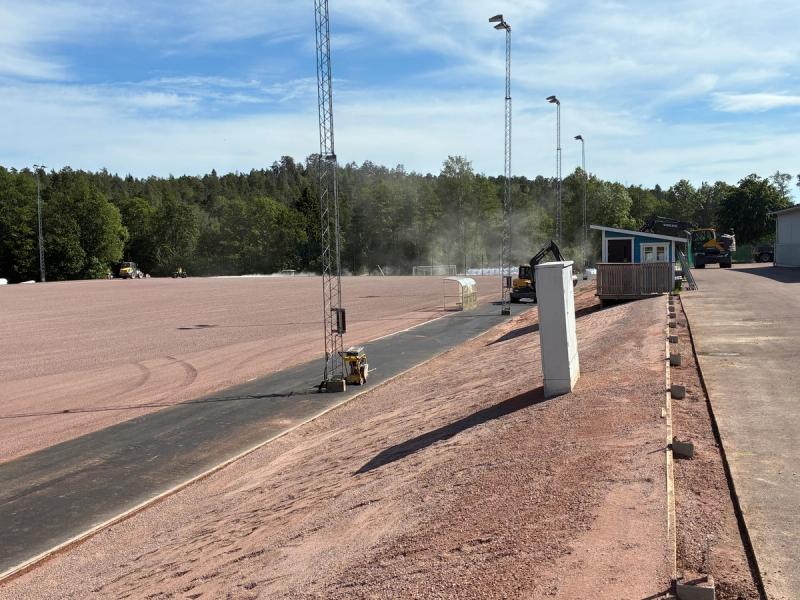 Arbetet med att byta ut konstgräset på Vikingavallen är i full gång och förhoppningen är att mattan ska vara klar inom ett par veckor.