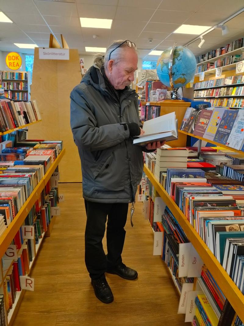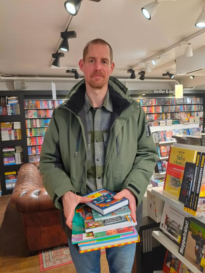 – Köper jag en bok så behöver jag göra mig av med en bok hemifrån, men om det är någon bok som meddelar mig “Köp mig!” - då slår jag till, säger han.