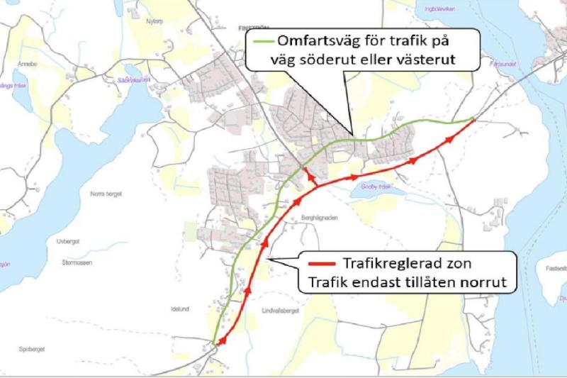 “Ett körfält behöver stängas av då fräsning och asfaltering av vägen ska utföras. Trafik norrut är fortsatt tillåten på den trafikreglerade sträckan. Trafik på väg västerut eller söderut ska använda von Knorringsvägen och Godbyvägen i stället, vilka kommer vara skyltade som omfartsvägar.”, meddelar infrastrukturavdelningen.