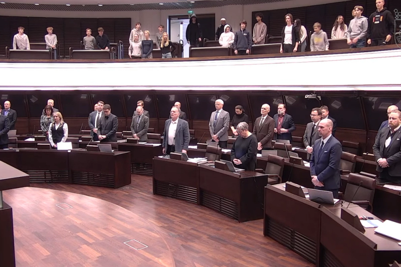 Den tragiska händelsen uppmärksammades också i lagtinget inför dagens debatt. På läktaren fanns ett flertal skolelever.