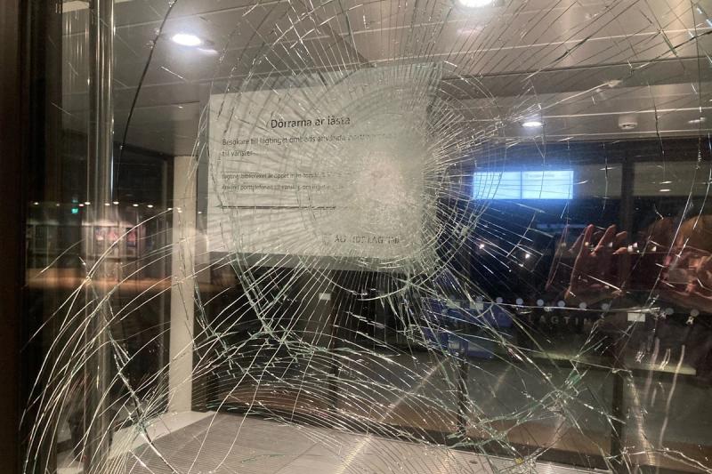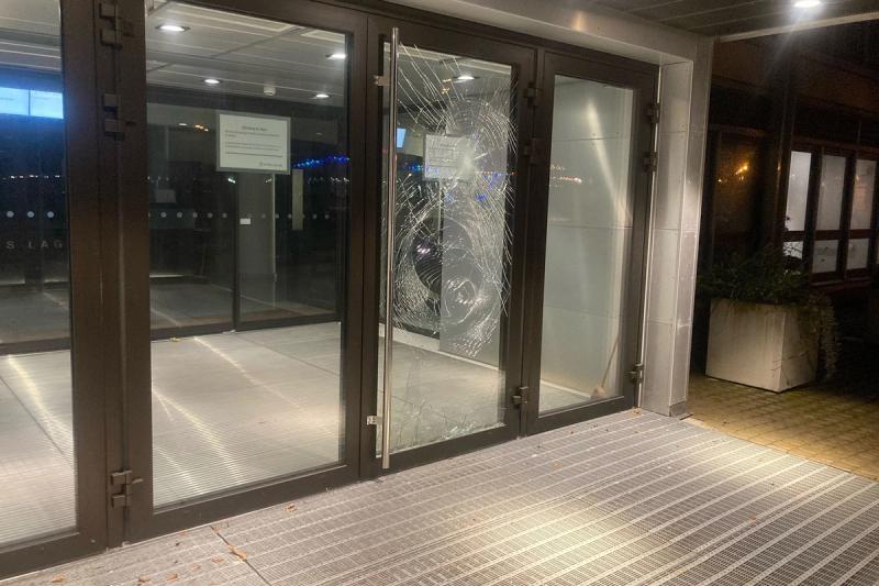 Lagtingets entré med dess glasdörrar har skadats under helgen.