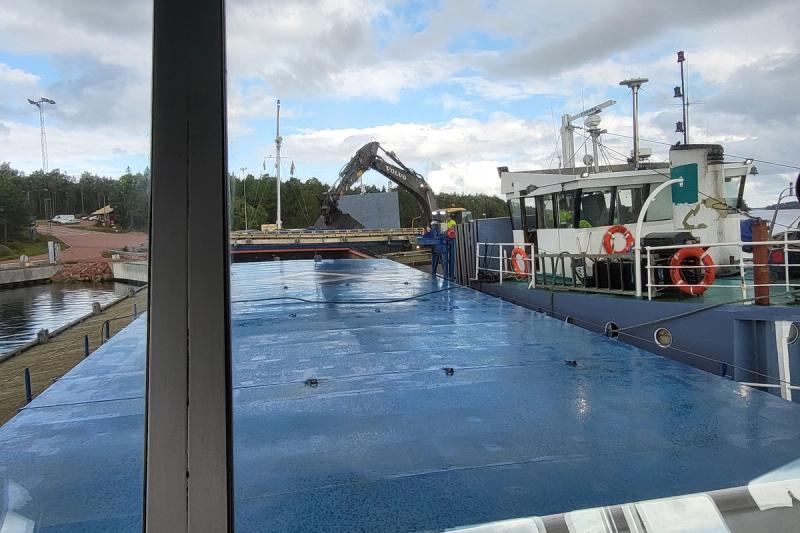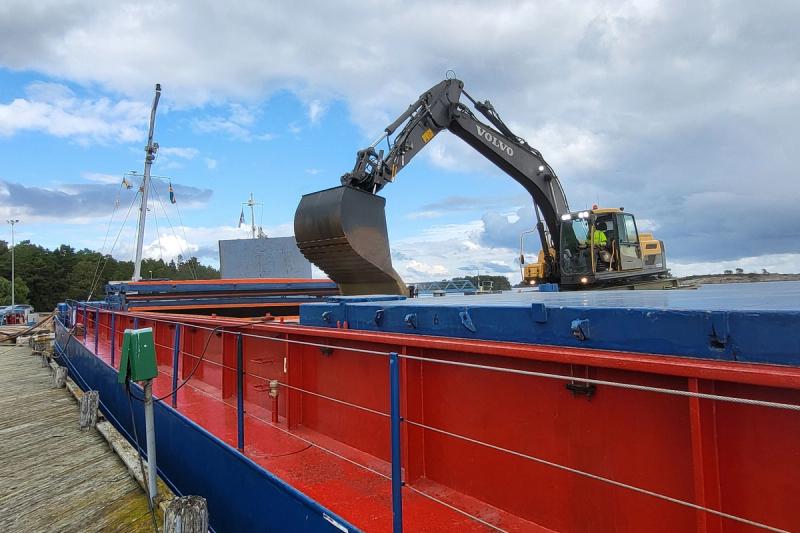 Merparten av lasten från tidigare grundstötta M/S Leonie är nu snart framme i Nådendal med hjälp av fartyget M/S Jeanny.