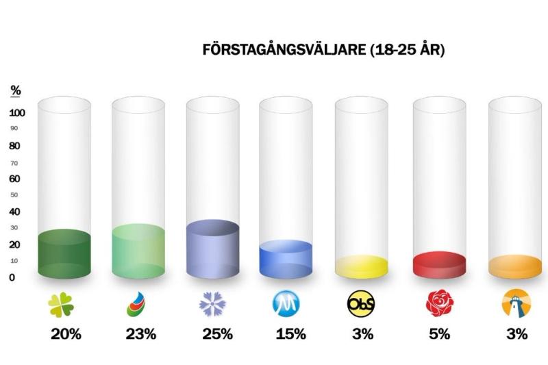 25 procent av de tillfrågade uppgav att de skulle rösta på Liberalerna och 23 procent på Hållbart initiativ, Centern kom på tredje plats med 20 procent av rösterna. Moderat samling fick 15 procent medan Åländsk demokrati och Socialdemokraterna fick 6 respektive 5 procent av rösterna. Obunden Samling och Ålands framtid fick under fem procent. Viktiga frågor för förstagångsväljare är vård, klimat- och miljöfrågor samt skola. 112 förstagångsväljare i åldern 18-25 år deltog i pejlingen.
