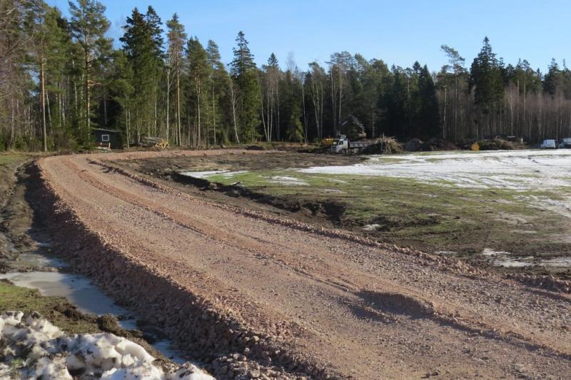 Markarbetet har återupptagits efter att överlasten som legat sedan våren 2019 har börjats tas bort. Det ska sprängas i ena änden av arenan innan underarbetet för det som ska bli löparbanor och gräsplan i mitten startar.