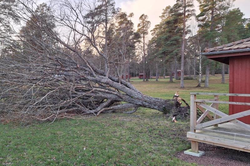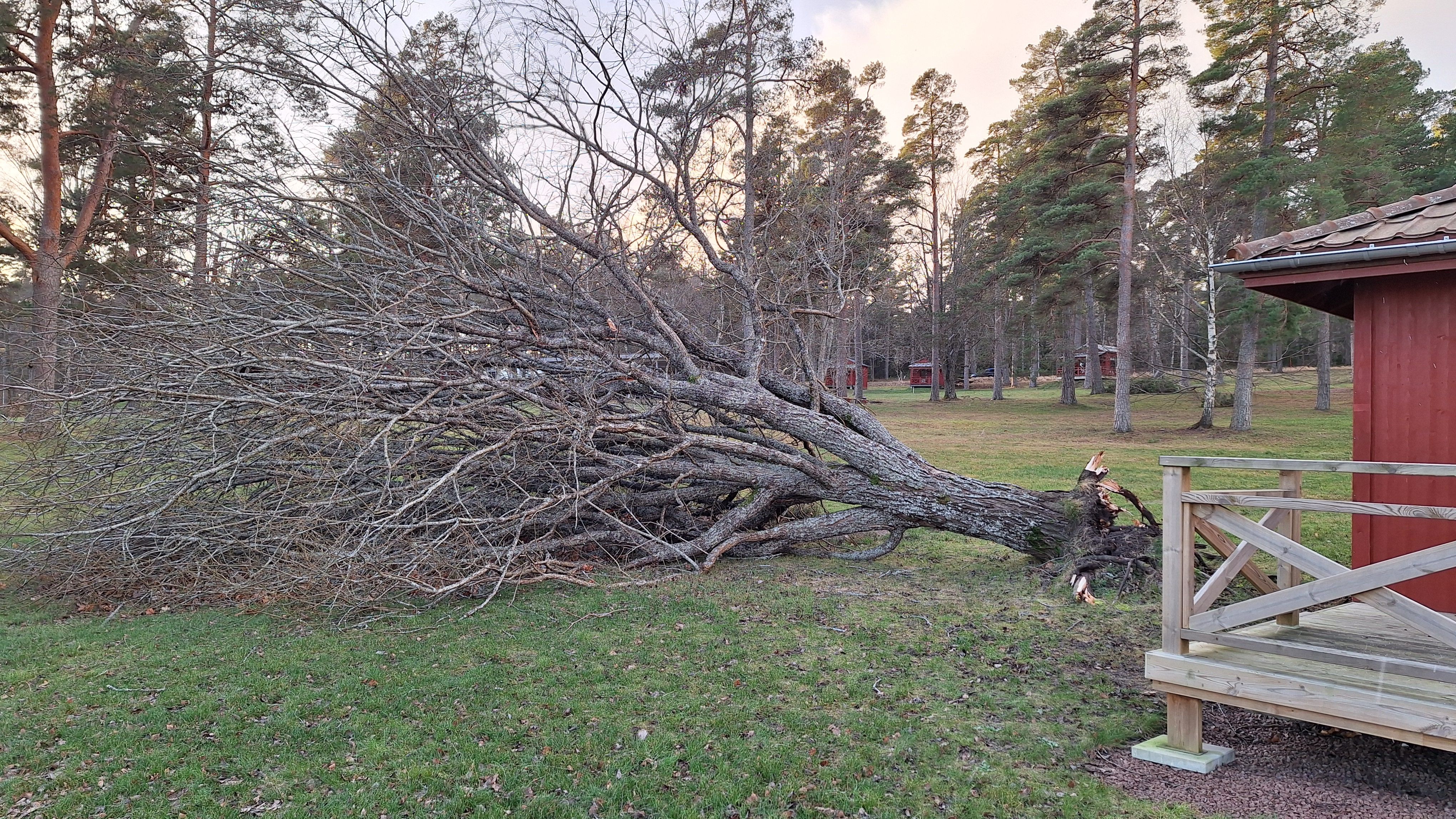 Skadereglerare John Andersson säger att ett 40-tal personer hade hört av sig redan vid lunchtid. Enligt honom handlar de flesta skadeanmälningar om nedfallna träd och tak som har blåst sönder under stormen Hannes.