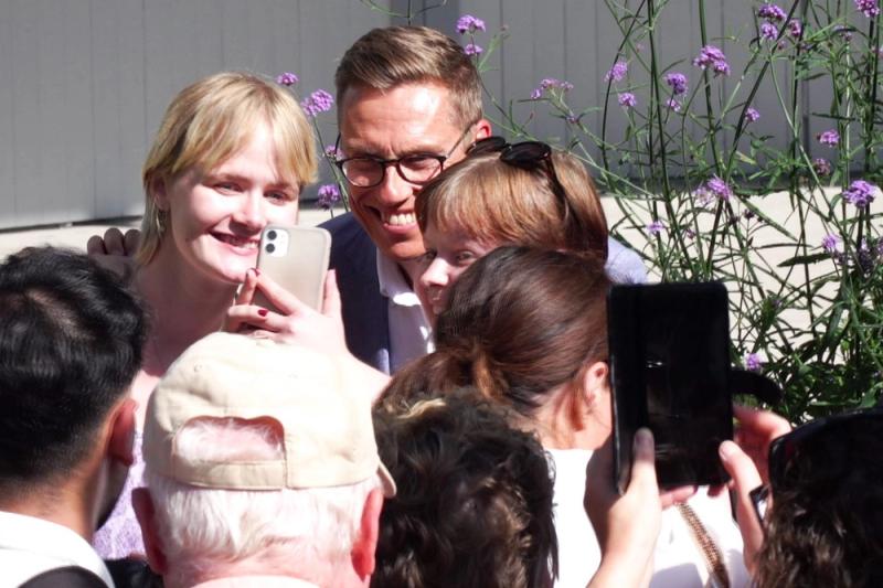 President Alexander Stubbs träff med allmänheten på torget i Mariehamn på tisdagseftermiddagen lockade många ålänningar.