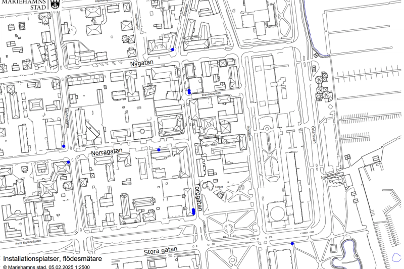 Sensorerna är en del av Mariehamns stads IOT-plattform, som godkändes år 2024 och totalt beräknas kosta cirka 100 000 euro. Sensorerna för flödesmätning har nu installerats och senare ska även ett för fastigheter komma upp. De är utformade som små lampor med vit arm som sticker ut med en svart glaskula undertill.