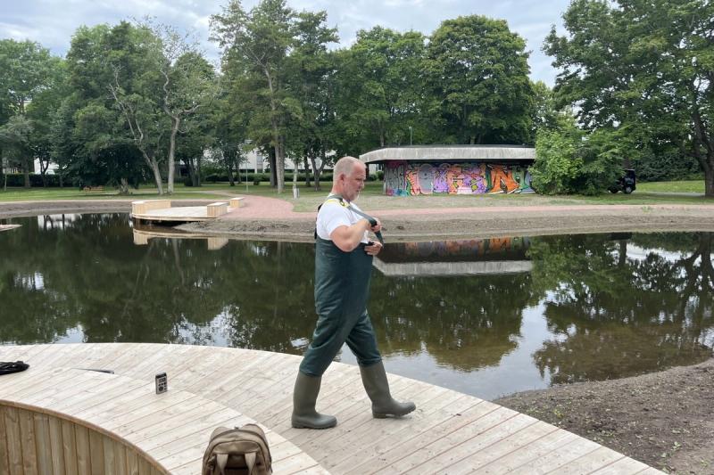 På sociala medier har dammen och området kring det kritiserats för att vara fult. Ulf Simolin och stadsarkitekt Johanna Hagström säger att alla får tycka som de vill.