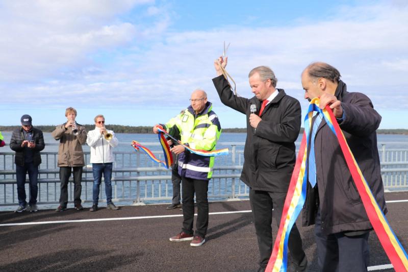 Invigningsceremonin hölls mitt på bron, och förutom tal av infrastrukturminister Mika Nordberg och Vårdös kommunfullmäktigeordförande Anders Englund stod bland annat musik och ett fem kilometer långt motionslopp på programmet.