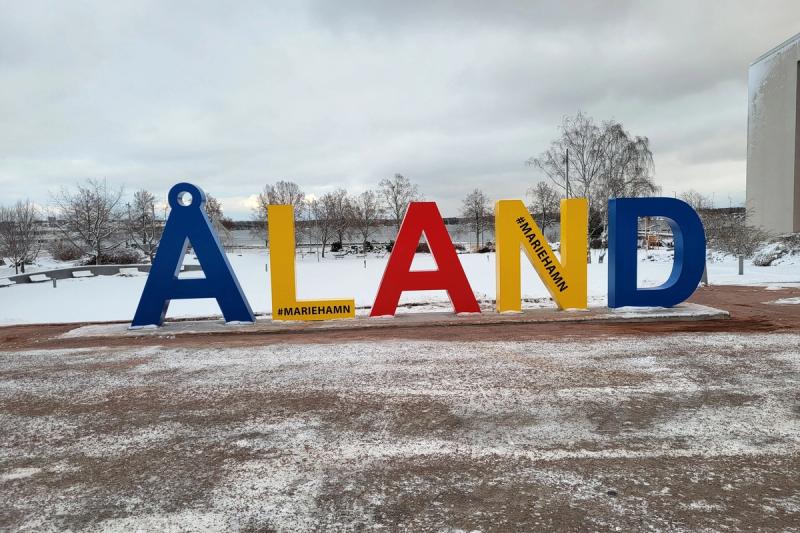 Nu finns bokstäverna som bildar ÅLAND i blått, gult och rött mellan Mariehamns stadsbibliotek och Alandica.