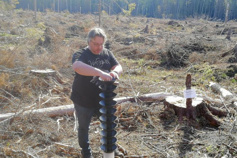 Nu placerar man ut fällor för att fånga in skadedjuret granbarkborre.