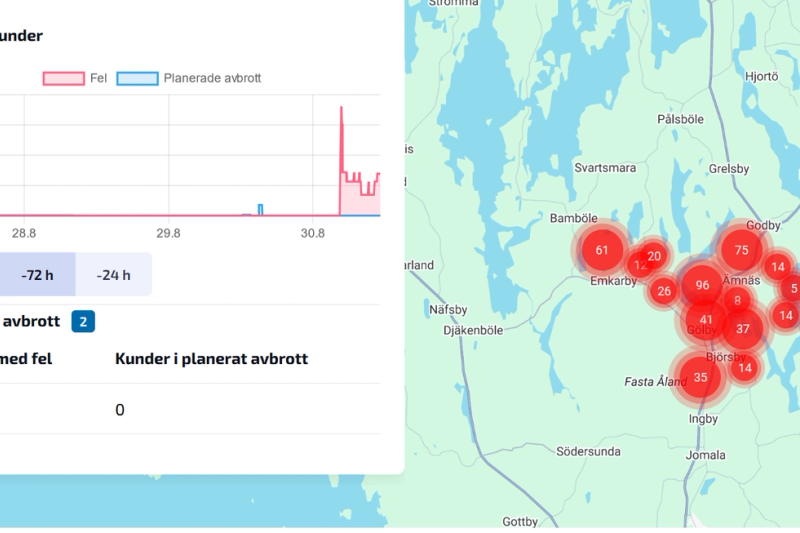 Lite efter 04.30 löste Ämnäs-brytaren i Godby ställverk och mörklade delar av södra Finström och norra Jomala. Vid klockan 09.15 var fortfarande 275 kunder utan el och Ålands elandelslag håller på med felsökning.