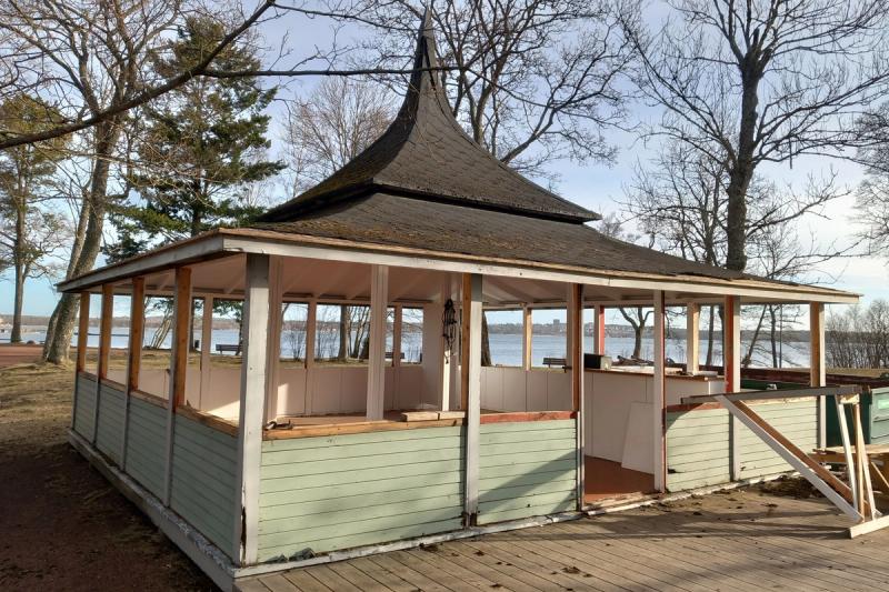 Paviljongen, som är byggd på 1980-talet, är i dåligt skick. Det gjordes en extern besiktning av byggnaderna på Lilla holmen förra året.