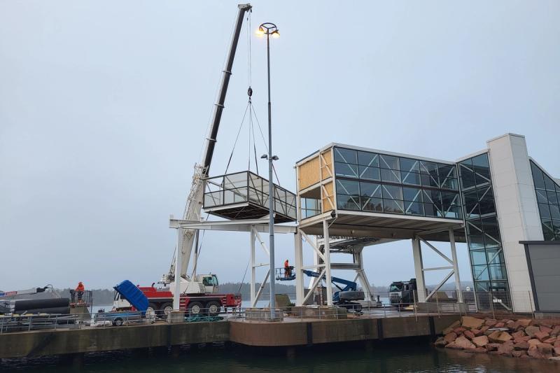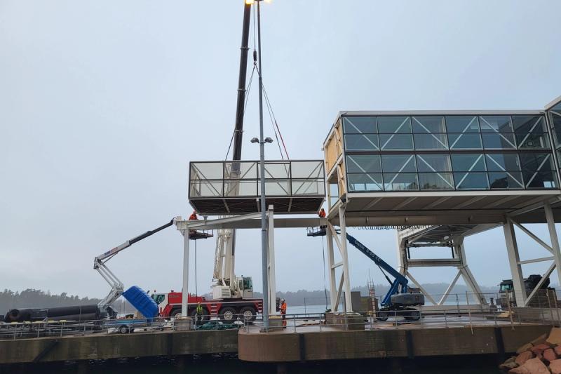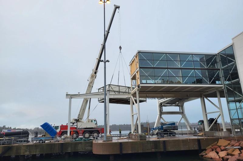 Under torsdagen lyfts nya matargångar till kaj nummer sex på plats i Västra hamnen i Mariehamn. Det medför att de fotpassagerare som ska ombord på eller stiga av Viking Lines M/S Cinderella inte längre behöver göra det via bildäck.