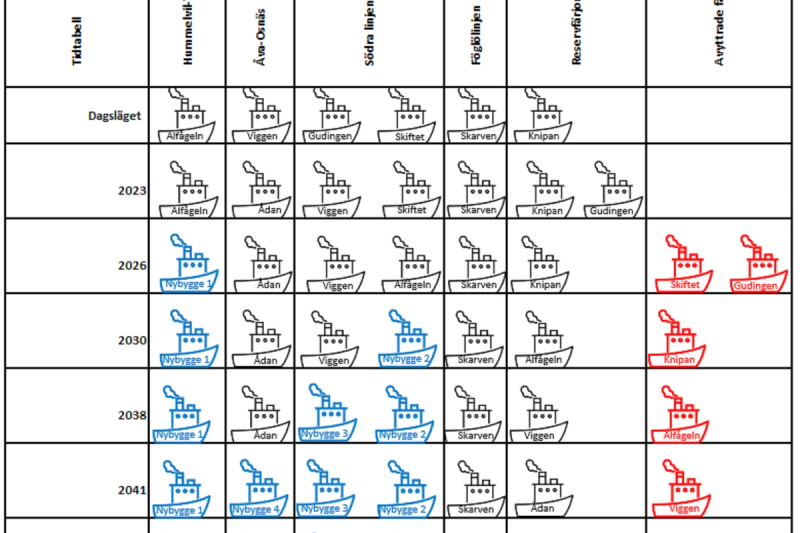 Vad gäller linfärjorna kan man bygga om några av dem till elhybriddrift, men även där beräknar man att fyra nya färjor behöver beställas mellan 2025-2040.